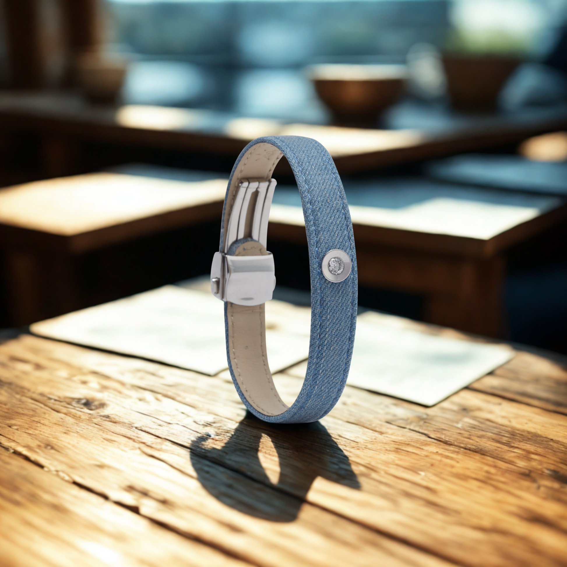 The Clasp: Polished Stainless Steel Safety Buckle size adjustable.